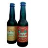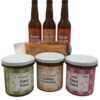 Verpakking: box met 1 flesje bier, 2 potjes met groenten op zuur/olie en 2 zakjes knabbelkontje